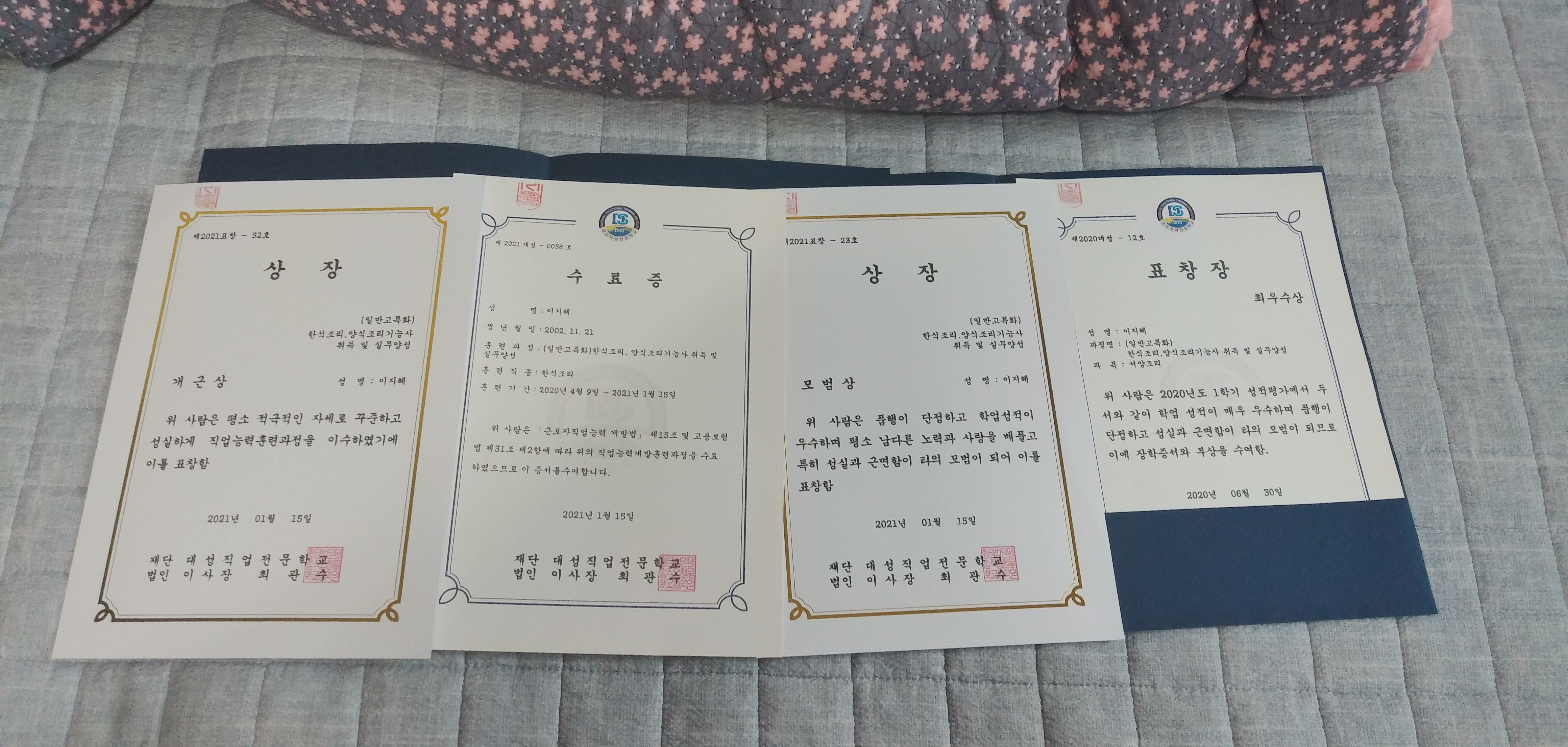2020³â¿¡ °í 3 ÀλýÀ» ¿©±â¼­ ¸¶¹«¸®Çϸ鼭 °¡Àå »ý°¢¿¡ ³²´Â °ÍÀÌ ¿Â¶óÀÎ ¼ö¾÷ ±×¸¸ ÇßÀ¸¸é ÁÁ°Ú´Ù´Â »ý°¢ÀÌ ¸¹ÀÌ µç´Ù. ¿Ö³Ä¸é Á¶¸®°ú¶ó ±×·±Áö ½Ç±â ¿¬½ÀÀ» Á» ´õ ÇØº¸°í ½ÍÀºµ¥ Äڷγª 19 ´öºÐ¿¡ Áý¿¡¼­ ¹æÄÛ ÀλýÀ» º¸³»°í ÀÖ´Â °ÍÀÌ ²Ï ¸¹ÀÌ ¾Æ±î¿ü´Ù. ºÎ¸ð´Ô°ú À۳⿡ ´Ù´Ï´ø Ǫ¸¥²Þ âÀÛÇб³ ¼±»ý´ÔµéÀÇ ´Ù¾çÇÑ °ÍÀ» ÇØº¸´Â °Íµµ ÁÁ´Ù´Â ±ÇÀ¯·Î ¼±ÅÃÀ» ÇÏ°ÔµÈ Á¶¸®°ú. ±Ùµ¥ ÀÌ·¸°Ô °í 3ÀÇ ¹ÝÀ» ½±°Ô ³¯¸®´Â °Í °°¾Æ¼­ ¸¹ÀÌ ¾Æ½¬¿ü´Ù. ³¯ÀÌ ±¦Âú¾ÆÁö¸é¼­ ´ë¸é ¼ö¾÷À» ½ÃÀÛÇÏ°í ¸Ç Ã³À½ ½ÃÀÛÇÑ °øºÎ´Â ÀÚ°ÝÁõ °ü·Ã ÀÌ·Ð ¼ö¾÷°ú Ä® Àâ´Â ¹æ¹ý°ú Ä®À» °¥¾Æº¸°í ±× ´ÙÀ½¿¡´Â Àç·á¸¦ ½ä¾îº¸°í Áö´Üµµ ºÎÃĺ¸°í ±× ´ÙÀ½¿¡´Â ±âÃʸ¦ Ȱ¿ëÇÑ ¿©·¯°¡Áö ½Ç½À ǰ¸ñµé  Áö±Ý »ý°¢Çغ¸¸éÀº ¸Ç óÀ½ ½ÃÀÛÇßÀ» ¶§ ÁøÂ¥ ¸ø Çߴµ¥, Áö±Ý »ý°¢Çغ¸¸é ÁøÂ¥·Î ¸¹ÀÌ ³ª¾ÆÁ³±¸³ª ÀÌ »ý°¢ÀÌ Àº±Ù ¸¹ÀÌ µé¾ú´Ù. ±×·¡µµ Á» ´õ ¿­½ÉÈ÷ ¿¬½ÀÇØ¼­ ´ÙÁ®¾ß µÇ´Â ½Ç·ÂÀÌÁö¸¸.... ÀÌ·Ð ¼ö¾÷À» µè°í ÀÚ°ÝÁõ Çʱ⠽ÃÇèÀ» º¼·Á°í ¿­½ÉÈ÷ ¼±»ý´ÔÀÌ ³ª´²ÁֽнÃÇèÁö¸¦ º¹½ÀÇÏ°í °á°ú·Î´Â ÇѽÄ, ¾ç½Ä, Áß½ÄÀ» Â÷·Ê·Î ÇÑ ¹ø¿¡ ÇÕ°Ý! ±× ´ÙÀ½¿¡´Â ÇÑ½Ä ½Ç±â¸¦ ¸ñÇ¥·Î ¿­½ÉÈ÷ ½Ç½ÀÀ» ÇÏ·Á°í ÇÏ¿´Áö¸¸, ±× ´ÙÀ½¿¡´Â ¿Â¶óÀÎ ¼ö¾÷À̶ó´Â °Å´ëÇÑ Àå¾Ö¹°ÀÌ ¾Õ¿¡ ³õ¿©Á® ÀÖ¾ú°í, °á±¹¿¡´Â ÇпøÀ» ´Ù´Ï°Ô µÇ¸é¼­ ¿Â¶óÀÎ ¼ö¾÷À» µè°í ´ë¸é ¼ö¾÷À» ½ÃÀÛÇϸ鼭 Çб³¿¡¼­ ÇÏ´Â ¼ö¾÷°ú Çпø¿¡¼­ ÇÏ´Â ¼ö¾÷À» ¿¬µ¿Çؼ­ µéÀ¸¸é¼­ ÇѽÄÁ¶¸®»ç ÀÚ°ÝÁõ ÇÕ°Ý!! ±×·¯°í ³ª¼­´Â ½ÄǰÀ¯Åë°ü¸®»ç¿Í ½ÄǰÄÚµð³×ÀÌÅÍ¿¡ µµÀüÇÏ¿© ÀÚ°ÝÁõÀ» ÃëµæÇϰí, ÁøÂ¥·Î ÀÌ·¸°Ô ÀÚ°ÝÁõ ¸¹ÀÌ µûº¸±â´Â óÀ½Àε¥ ¤¾¤¾¤¾¤¾¤¾ ±âºÐÀÌ ÁøÂ¥·Î »ö´Þ¶ú´Ù. ±×¶§¸¦ »ý°¢Çغ¸¸é °Ì³ª ¶³·Á°¡Áö°í ¸Ó¸®°¡ ¹éÁö »óŰ¡ µÇ¾î¼­ ÁøÂ¥ Å»¶ôÇÏ¸é ¾î¼Áö Çϰí Àִµ¥, ÇѽÄÀº ÇÕ°ÝÀ» Çߴµ¥, ±×·±´Ù°í ´Ù Çѹø¿¡ ´Ù ÇÕ°ÝÇÑ °ÍÀº ¾Æ´Ï°í ¾ç½ÄÀº ºÒÇÕ°ÝÀ» ´çÇϸ鼭 ³ª´Â ÇѽÄÀÌ Á»´õ ½±±¸³ª ¶ó´Â »ý°¢À» Çϱ⵵ ÇÏ¿´´Ù. ¤¾¤¾¤¾¤¾ ±×·¡µµ À̹ø ³âµµ¿¡ ´Ù¸¥ °ú Ä£±¸µé°ú ¸¸³ª¼­ Çß´ø À̾߱â´Â ½Ç·ÂÀÌ Áö±Ý ¸ðµÎ ´Ù ¸¹ÀÌ ´Ã¾ú´Ù°í ¿Â¶óÀÎ ¼ö¾÷À¸·Î ÀÎÇØ¼­ ½½·³ÇÁ¸¦ Á¶±Ý¾¿ °Þ¾ú±â´Â ÇÏ¿´Áö¸¸, ±×·¡µµ ±Øº¹ÇÏ°í ´Ù½Ã ½Ç·ÂÀ» ´Ã¸®¸é¼­ ÃëÁ÷À» ÇÑ Ä£±¸µµ ÀÖ°í, ÀÚ°ÝÁõÀ» ÃëµæÇÑ Ä£±¸µµ ÀÖ°í, ¹Ý¿¡¼­ 1, 2À§·Î žÀ» ¸ÔÀº À̾߱⵵ µé¾úÀ» ‹š ÁøÂ¥·Î ³ªµµ ¸¹ÀÌ ´Ã¾î¾ß°Ú±¸³ª ÇÏ´Â »ý°¢ÀÌ µé±âµµ Çß´Ù. ³¡À¸·Î À̹ø ³âµµ¿¡´Â À̵µ Àúµµ ¸øÇÏ°í ±×³É ³¡³¯ ÁÙ ¾Ë¾Ò´Âµ¥, ÀÚ°ÝÁõµµ µû°í »óµµ ¹Þ°í À§ÀºÀÇ ¼±»ý´Ô, ½Å¼ºÈñ ¼±»ý´Ô, ¹é°æ¹Ì ¼±»ý´Ôµµ ¸¸³ª¼­ ¿©·¯°¡Áö ±â¼úµµ ¹è¿ì°í °°Àº ¼ö¾÷À» µèÁö¸¸ ´Ù¾çÇÑ ¸ñÇ¥¸¦ Çϰí ÀÖ´Â ¹Ý Ä£±¸µéµµ ¸¸³µ°í ³­»ý óÀ½À¸·Î ¹ÝÀåµµ ÇØº¸°í Àº±Ù ¾Ö¸ÅÇϸ鼭µµ ¾îÀ̾ø°í Àç¹ÌÀÖ´Â 1³âÀ» º¸³½ °Í °°¾Ò´Ù. 1³â µ¿¾È ¿­½ÉÈ÷ °¡¸£ÃÄ Áּż­ °¨»çÇÕ´Ï´Ù.  À§ÀºÀÇ ¼±»ý´Ô, ½Å¼ºÈñ ¼±»ý´Ô, ¹é°æ¹Ì ¼±»ý´Ô ÁøÂ¥Ã·ºÎÆÄÀÏ : 20210123_142443[1].jpg ´Ù¿î·Îµå